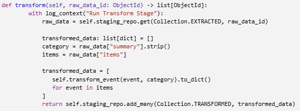 - Modularity and maintainability – Each part of the data flow (extraction, transformation, loading) lives in its own service or repository, making it easier to update or test in isolation